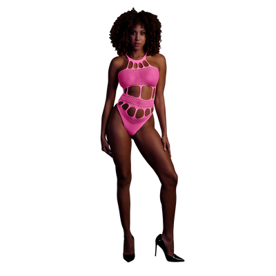 Bodystocking met Halterneck – One Size – Neon Pink