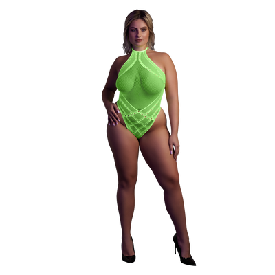 Bodystocking met Halterneck – Plus Size – Neon Groen