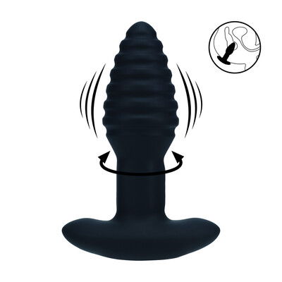 Vibrerende en Draaiende Geribbelde Siliconen Anale Plug – Zwart