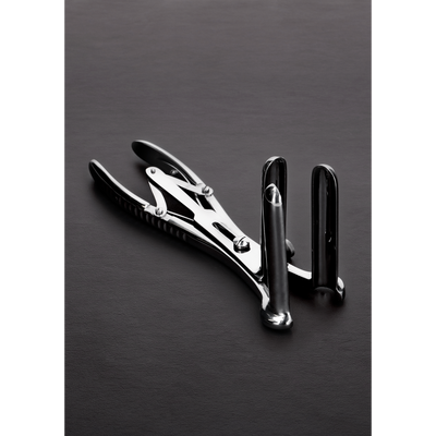 Verstelbare metalen spreidbalk met leren manchet – 35 tot 60 cm – Zwart