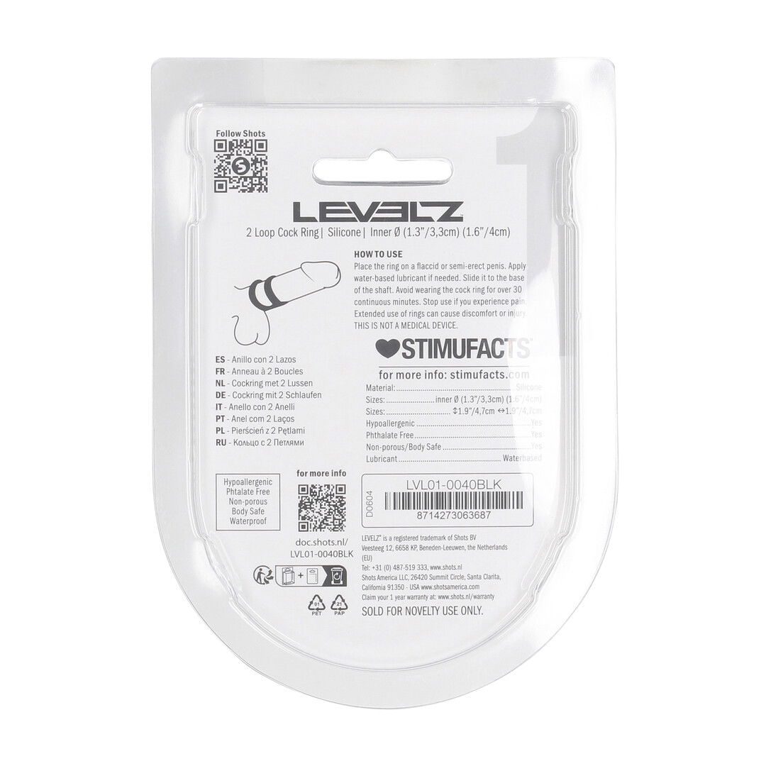 Double the grip, double the control. This 2-loop cock ring from the LEVELZ collection is designed to slide onto the shaft, providing extra pressure and precision placement. Whether you’re stacking for sensation or using one loop as a stabilizer, this non-vibrating ring delivers added intensity . Made from body-safe silicone and packaged in a sleek clamshell for effortless retail display.