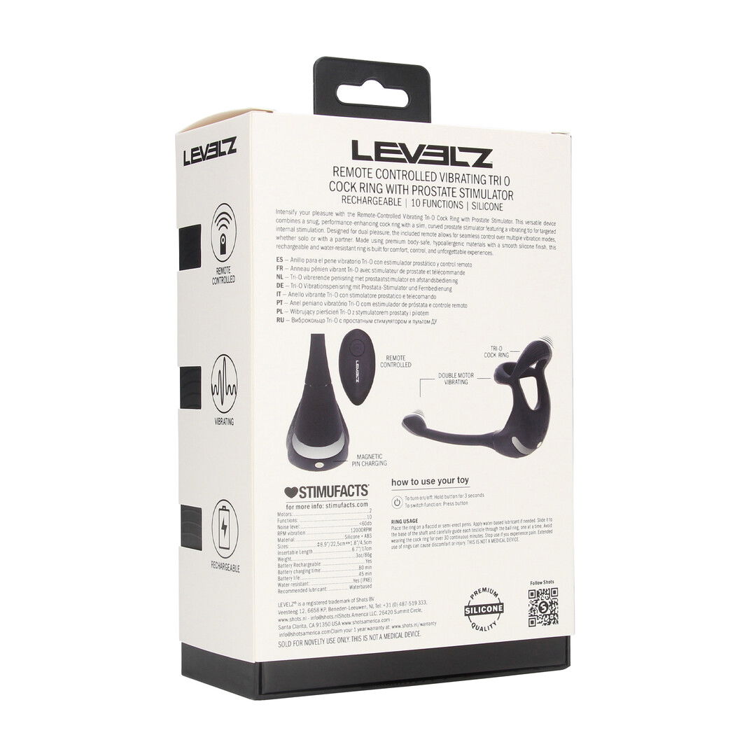 Intensify your pleasure with the Remote-Controlled Vibrating Tri-O Cock Ring with Prostate Stimulator. This versatile device combines a snug, performance-enhancing cock ring with a slim, curved prostate stimulator featuring a vibrating tip for targeted internal stimulation. Designed for dual pleasure, the included remote allows for seamless control over multiple vibration modes, whether solo or with a partner. Made using premium body-safe, hypoallergenic materials with a smooth silicone finish, this rechargeable and water-resistant ring is built for comfort, control, and unforgettable experiences.