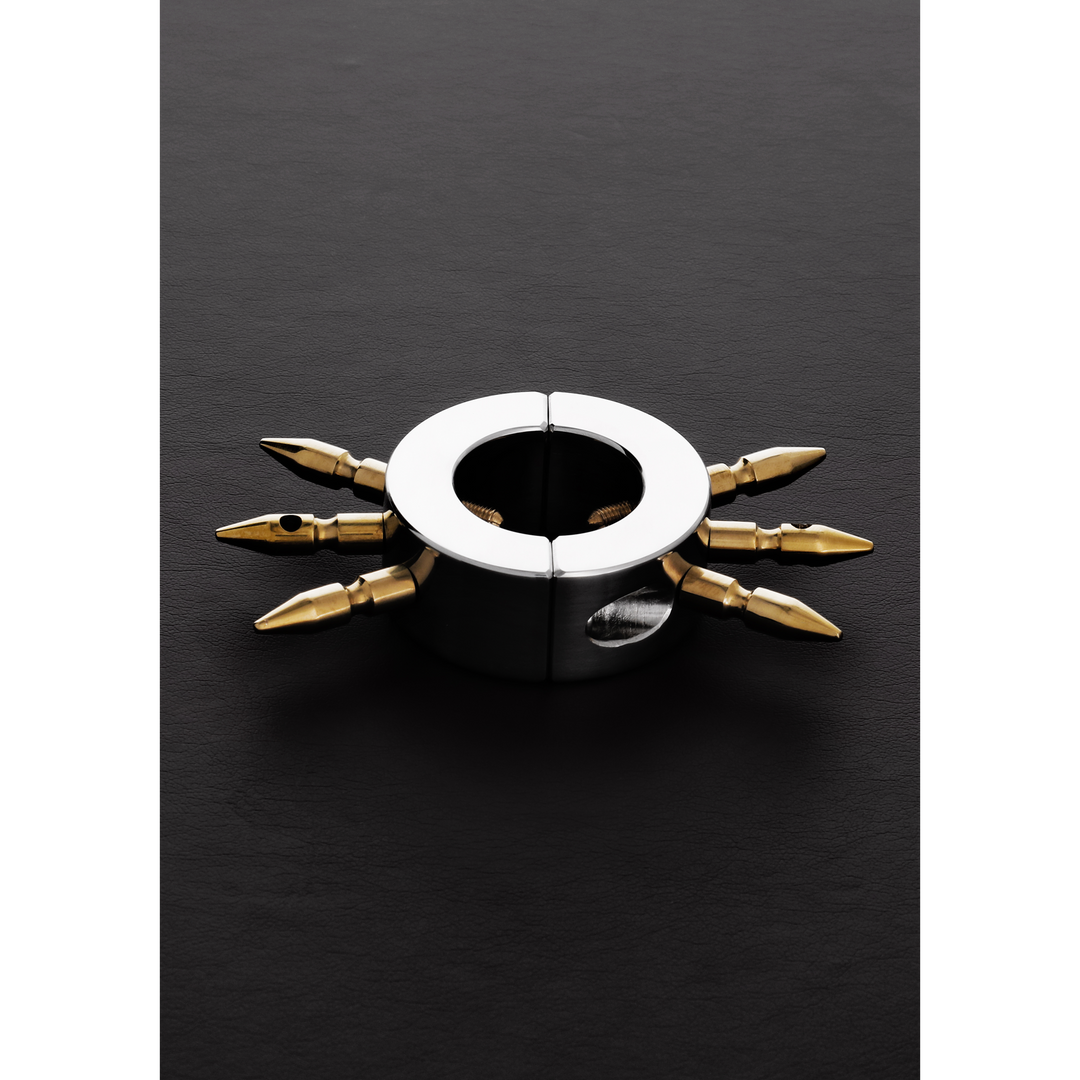 Stalen tweedelig Ball Stretcher met verstelbare interne en externe spijkers. Deze fijne, erotische, roestvrij stalen Ball Stretcher is comfortabel, leuk, uniek en ziet er geweldig uit! Laat je niet afschrikken door het gewicht! Het past urenlang comfortabel met een aangename, gezellige kleine herinnering dat ze zo klaar zijn als jij bent voor actie. Geleverd met een inbussleutel.