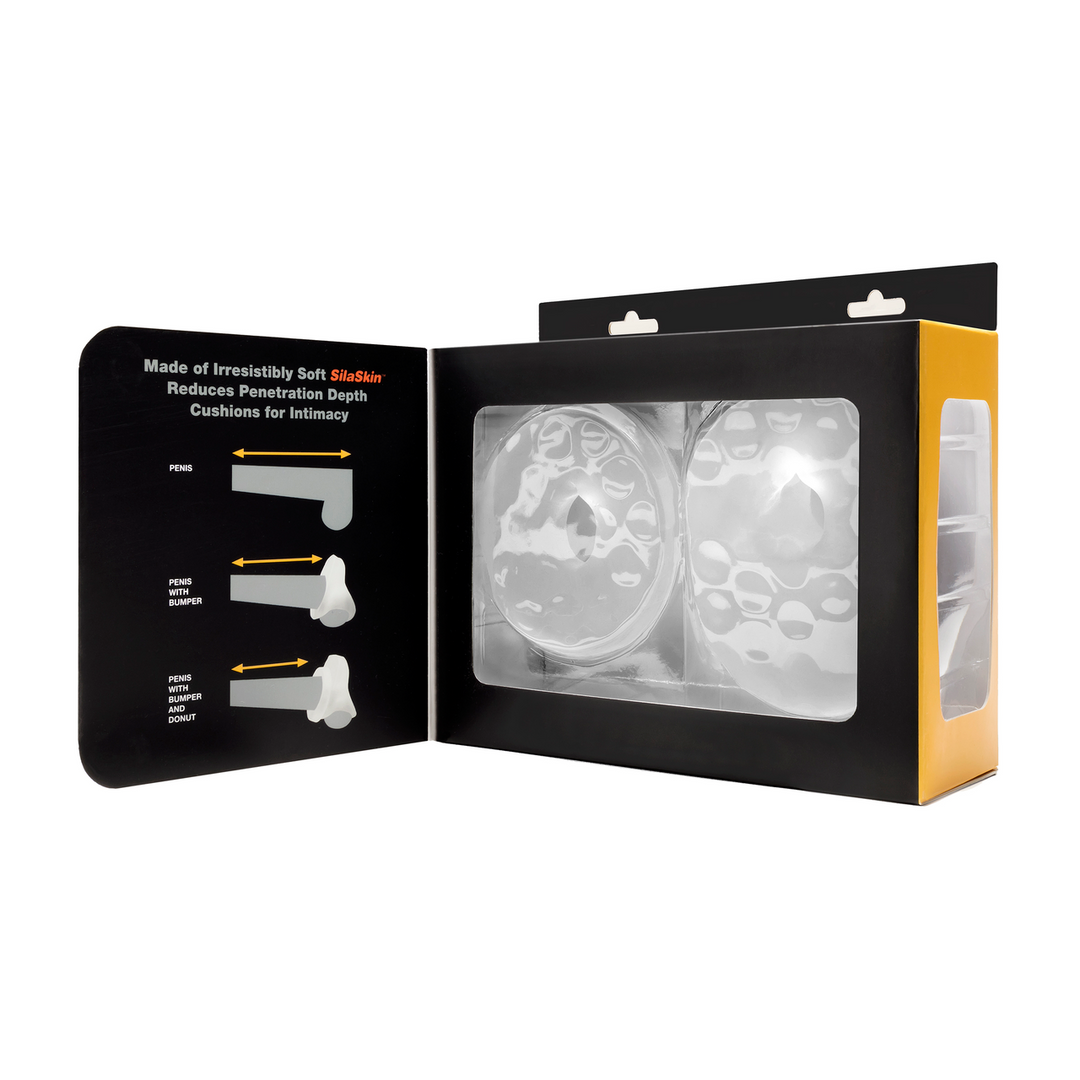 Dit hete nieuwe seksspeeltje biedt meer kussen voor de duw… letterlijk. Perfect Fit Brand heeft de Bumper gelanceerd, het eerste volwassen product dat diepe stoten tijdens de geslachtsgemeenschap dempt, waardoor er meer gepassioneerde seks zonder beperkingen mogelijk is. Ontvangende partners die ongemak ervaren tijdens de geslachtsgemeenschap met een partner, kunnen plezier vinden in het vermogen van de Bumper om seks aangenamer te maken binnen hun comfortzone. Penetrerende partners zullen nog steeds het gevoel van volledige penetratie en intiem contact met hun partner ervaren zonder zich in te houden. Voor vrouwen fungeert dit ook als een hulpmiddel voor seksuele gezondheid om de kans op een gekneusde baarmoederhals te verkleinen. De Bumper is een systeem van twee delen: de Bumper Thrust Buffer en de Donut Buffer. Elk kan onafhankelijk of samen worden gebruikt om een dik en beschermend kussen te creëren voor wanneer de stoten diep gaan. Gemaakt van ultra-zacht SilaSkin-materiaal, is de Bumper ook onweerstaanbaar zacht en comfortabel. De Bumper fungeert als een kussen tussen twee partners om een deel van de schokken op te vangen en de sensatie van maximale diepte voor de penis te bieden. De Bumper™ past om de penis en wordt op zijn plaats gehouden door de testikels. De Bumper is ook ontworpen om verstelbaar te zijn, zodat gebruikers meer kussens (de Donut Buffers) kunnen toevoegen om aan hun dieptebehoefte te voldoen. Nu kunnen seksuele partners posities proberen die ze eerder vermeden met nieuw vertrouwen en plezier.