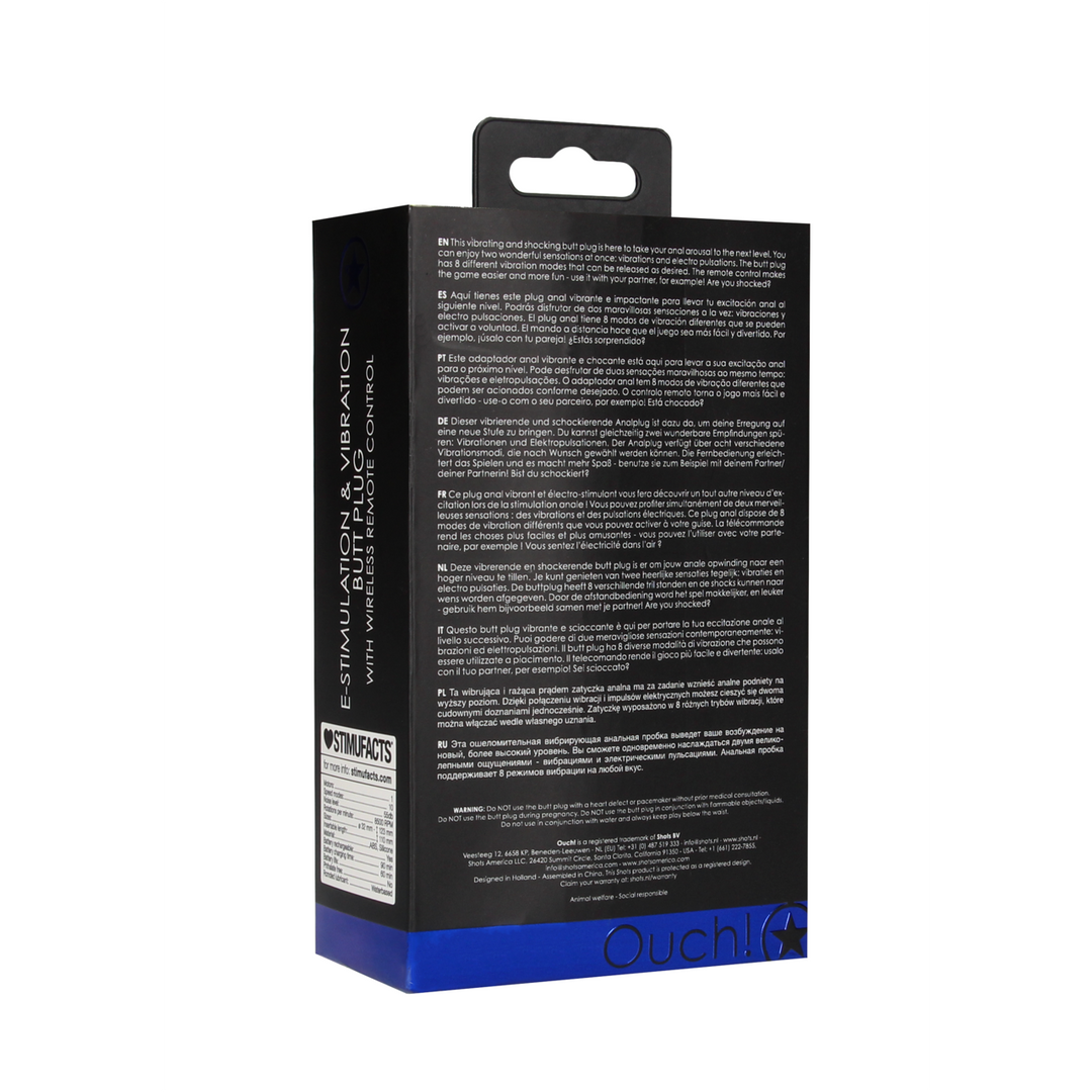 Deze vibrerende en shockerende butt plug is er om jouw anale opwinding naar een hoger niveau te tillen. Je kunt genieten van twee heerlijke sensaties tegelijk: vibraties en electro pulsaties. De buttplug heeft 8 verschillende tril standen en de shocks kunnen naar wens worden afgegeven. Dankzij zijn anatomische vorm wordt de prostaat op een fijne manier gestimuleerd, en word jou orgasme intenser dan ooit tevoren. Door de afstandbediening word het spel makkelijker, en leuker – gebruik hem bijvoorbeeld samen met je partner! Are you shocked?