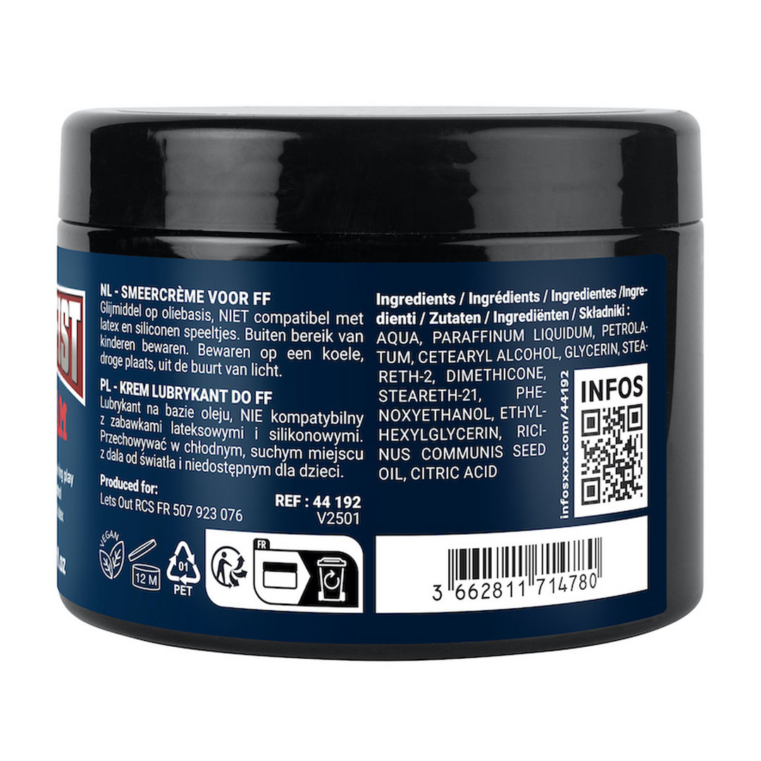 Cream with a hybrid formula enriched with castor oil. This adds softness and protects mucous membranes. Creamy texture. NOT compatible with latex.