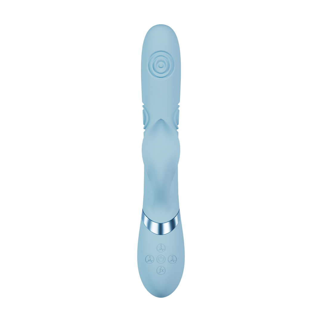 De VIVE064 vibrator is een stapje boven de concurrentie. Drie onafhankelijk bestuurde New Generation F1 10-functie motoren geven kracht aan deze prachtig ontworpen vibrator. Er is een motorfunctie voor G-spot vibratie, een motor voor clitorale stimulatie en een tikkende stimulator motor die je zal helpen om overweldigend genot te bereiken. Met meer dan 1000 verschillende combinaties zal dit speeltje je naar plaatsen brengen die je nooit had durven dromen. Wanneer je dicht bij de climax komt, zal één aanraking van de speciale functie climaxknop alle motoren onmiddellijk op volle kracht/snelheid brengen. De volledig USB-magnetisch oplaadbare medische siliconen vibrator heeft een batterijduur van 90 minuten en is volledig waterdicht (IPX6), wat betekent dat je dit speeltje overal kunt gebruiken. Alle VIVE vibrators worden geleverd met een garantie van 1 jaar.