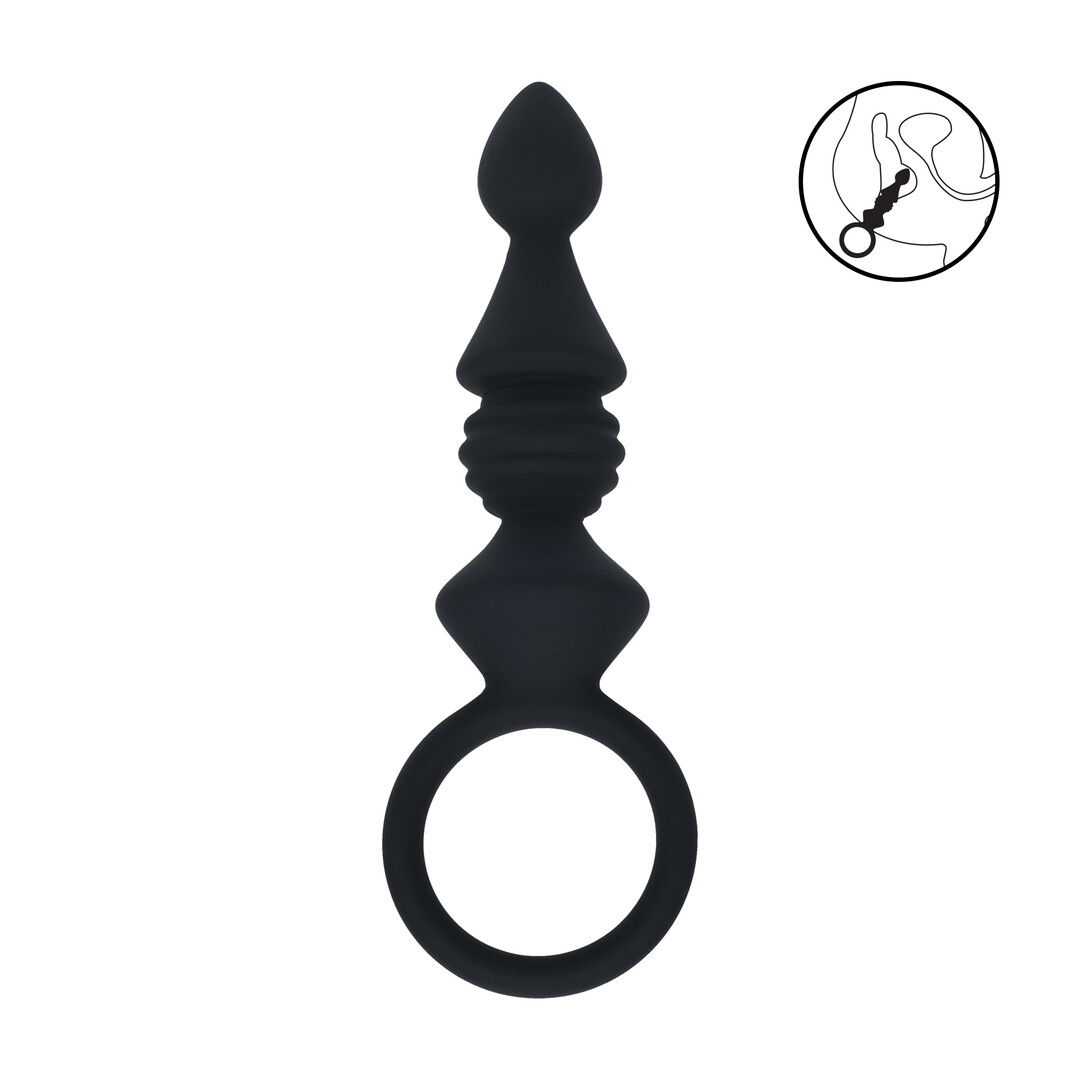 Geribbelde Siliconen Anale Probe met Lus – Zwart