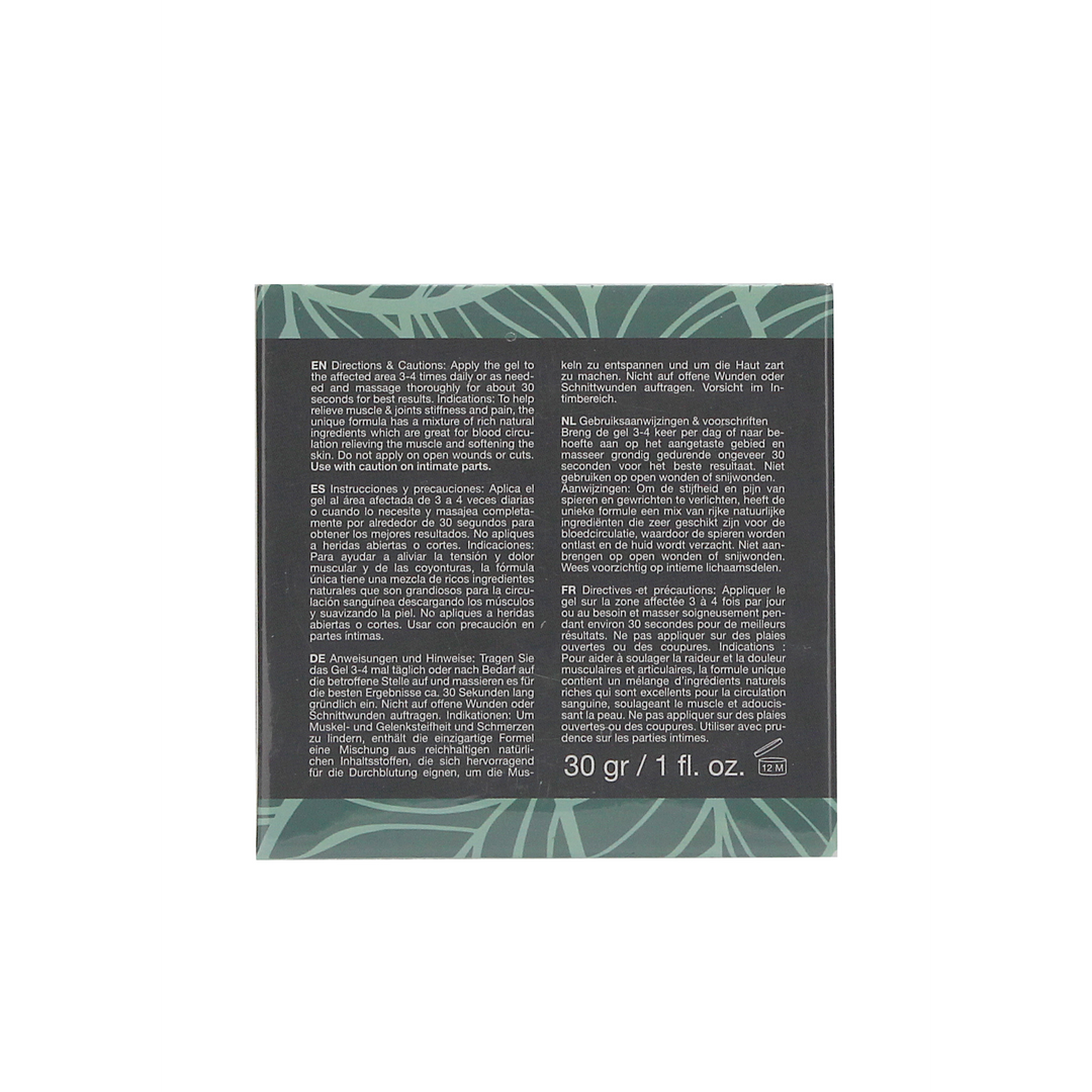 To help relieve muscle joints stiffness and pain.The unique formula has a mixture of rich natural ingredients.Great for blood circulation relieving the muscle and softening the skin.Apply the gel to the affected area 3-4 times daily or as needed.Massage thoroughly for about 30 seconds for best results./