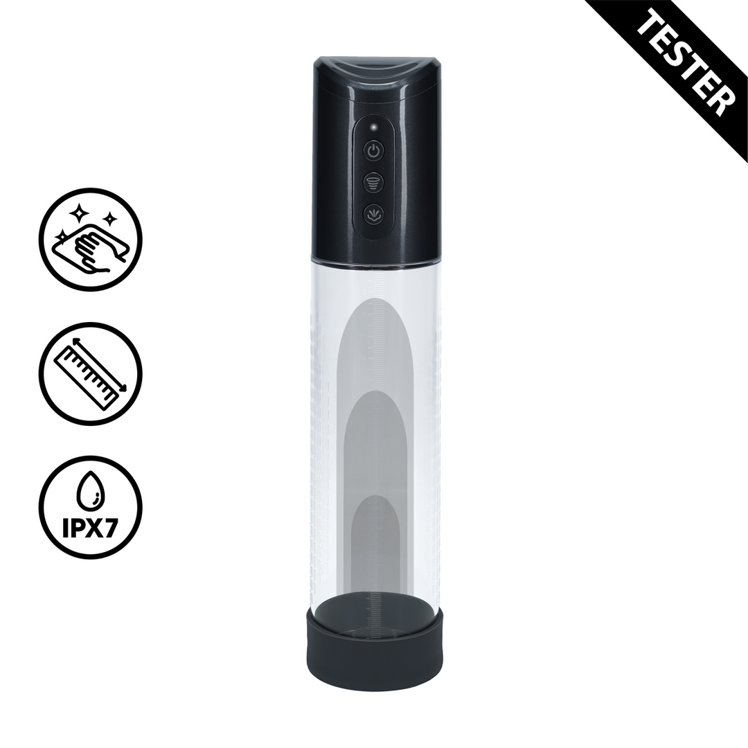 De HyperPump-pomp biedt je volop mogelijkheden voor penissvergroting. De inlegslang is gemaakt van gladde silicone, wat zorgt voor een comfortabele ervaring. Verbaas jezelf elke keer weer over hoe groot je kunt worden! Met de druk op een knop creëert de extreem krachtige pomp een supersterk vacuüm, waardoor je snel en krachtige erecties krijgt. De zachte silicone opening vormt een strakke maar comfortabele afsluiting, zodat je zonder zorgen van de voordelen kunt genieten rondom water.