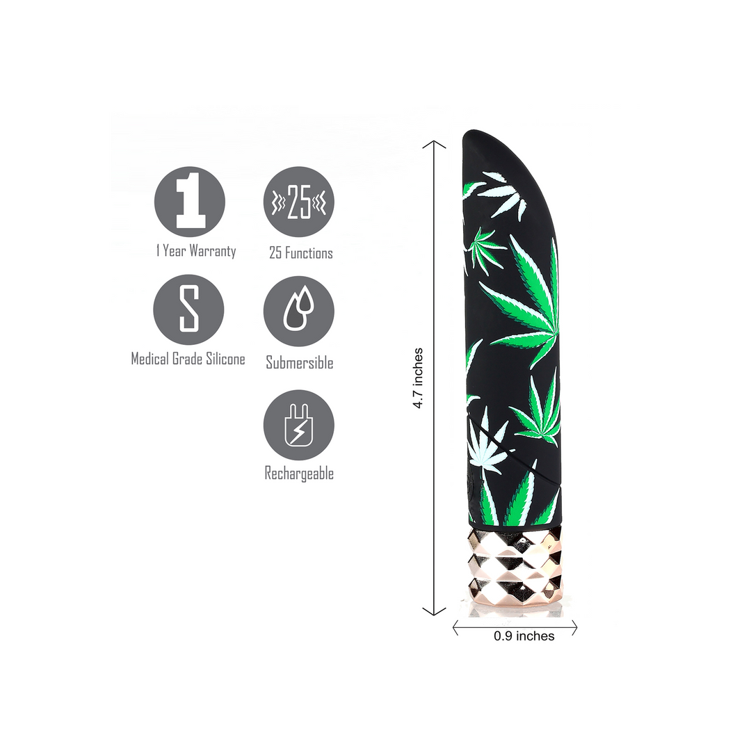 Supercharge your pleasure with a touch of divine intervention. The JANE 420 Vibrating 25-Function Bullet is a tiny powerhouse of heavenly pleasure. Crafted in medical grade silicone for a truly angelic glide. The JANE 420 graces you with 25-functions of speed and pulsations. Her sparkly base shimmers with gorgeous purple twinkles for a luxurious accent to your toy collection. The JANE’s slender design delivers precise stimulation with an extra strong motor. You’ve never seen a slim bullet this powerful and versatile. You’ll never need to buy another bullet again. EMBRACE THE POWER of JANE 420, the ultimate extra strength luxury vibrator!