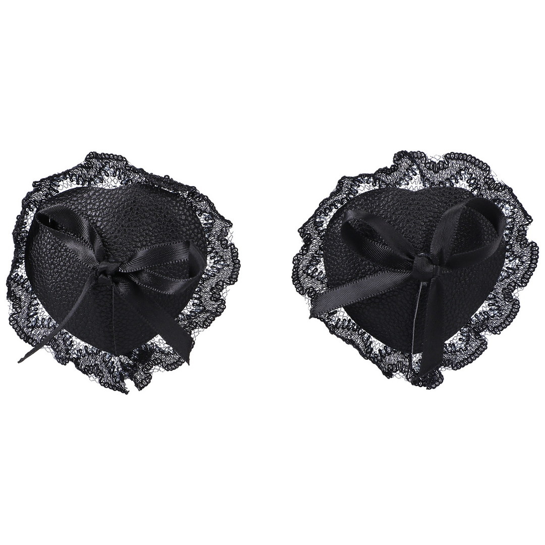 Black Vegan Leather and Lace PastiesSilicone Glue Allows for Multiple UsesPhthalate-Free, Body-Safe/