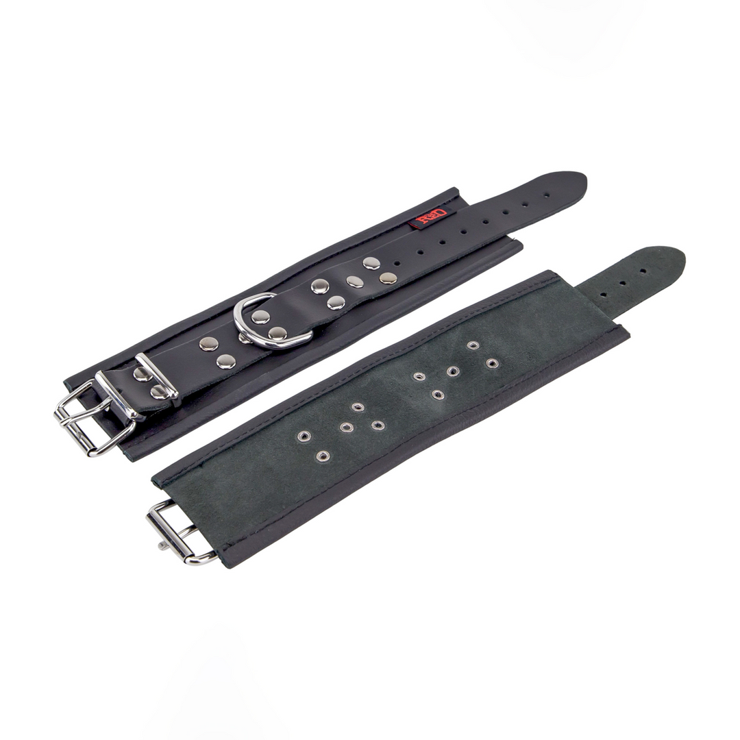 These leather handcuffs are designed by The Red. They’re ideal for tying up your partner and having fun. They are made of genuine cowhide leather with a skinless interior. The thickness is thin. The length is 25 cm adjustable and the width is 6.5 cm.