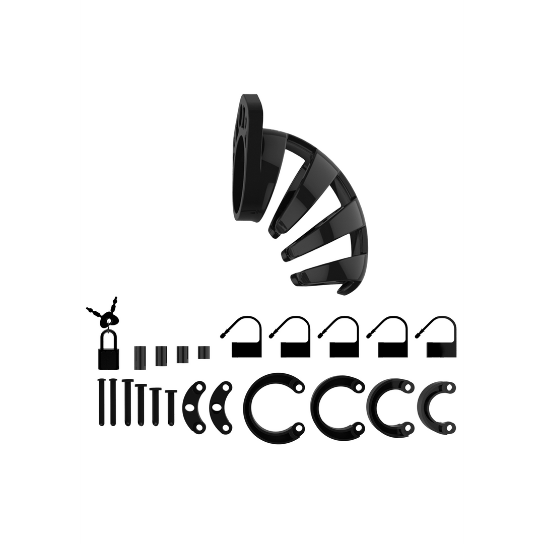 BRENG JE BDSM-SPEL NAAR EEN TOTAAL NIEUW LEVEL! CONTROLEER OF WORDT GECONTROLEERD, DAT IS DE VRAAG!De Man|Cage Chastity Cages zijn gemaakt van polycarbonaat van hoge kwaliteit, en dat is een zeer licht, duurzaam en hypoallergeen materiaal. De kooi bestaat uit drie delen die perfect op elkaar aansluiten. De twee geleide pennen sluiten de bovendelen aan, en de ovale borgpen sluit de ringen op de kooi aan. Dankzij verscheidene ringen in verschillende maten en opvullers kunt u de perfecte maat creëren. De ringen zitten comfortabel en zijn gegarandeerd veilig. Met een metalen slotje of kabelbinder kunt u de kooi makkelijk vergrendelen. De meegeleverde snelbinders zorgen ervoor dat het alarm op feesten, festivals en zelfs luchthavens niet afgaat. De superieure Man|Cage-serie is uitgerust met veschillende ventilatiekanalen en een opening om te urineren omdat hygiëne erg belangrijk is tijdens het dragen. Door de kooi is het onmogelijk om een erectie te krijgen, maar deze zal na het bevrijden super intens zijn, net als het bevrijdende orgasme dat volgt. Dankzij Man|Cage Chastity Cage geeft de houder van de sleutel ongekende macht over de seksuele bevrediging.