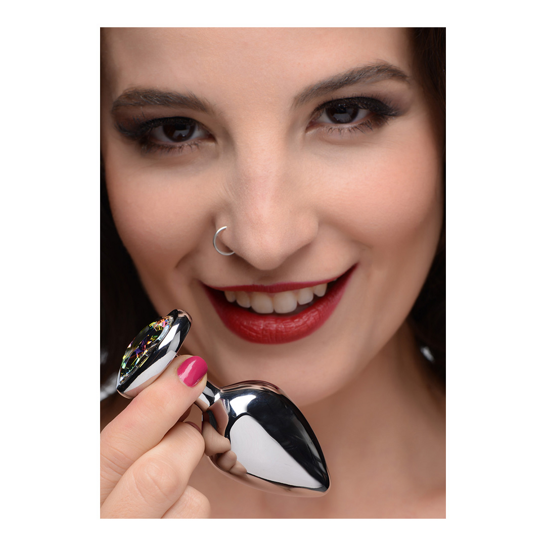 Versier je derriere met deze Rainbow Prism Gem buttplug! De regenboogedelsteen voegt oogverblindende wellustige energie toe aan je buit, terwijl het grote formaat en het bevredigende gewicht deze briljante buttplug kwalificeren als het belangrijkste evenement voor de nacht. Gemaakt met een nikkelvrije aluminiumlegering voor een supergladde, niet-poreuze, lichaamsveilige ervaring! Compatibel met glijmiddelen op water- en siliconenbasis, zodat je elk soort glijmiddel kunt gebruiken voor een comfortabele anale sessie. Het bevredigende gewicht en de dichtheid zullen de anale spelers van elke minnaar zeker bevallen. Uitstekend voor temperatuurspel – verwarm het of koel het af voor een verscheidenheid aan verschillende achterdeursensaties! Reinig voor en na gebruik met warm water en milde antibacteriële zeep of speelgoedreiniger. Steek en verbaas je geliefde met dit sensuele juweeltje en laat hun motoren op gang komen!
