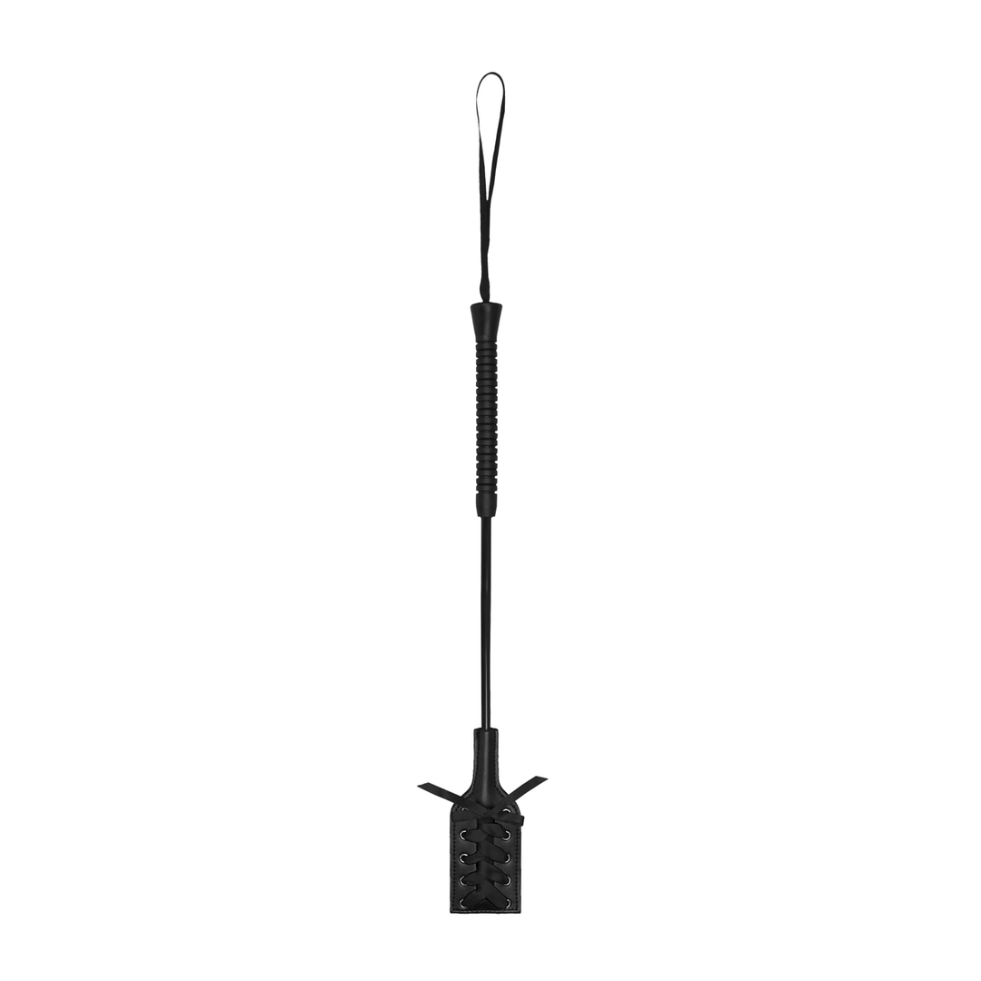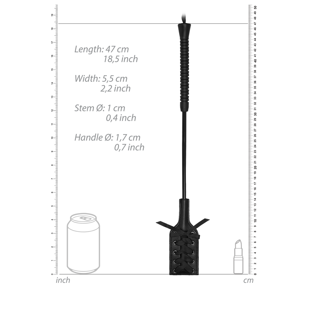 This short handled rectangular shaped crop with black lace is the perfect way to discipline your partner.