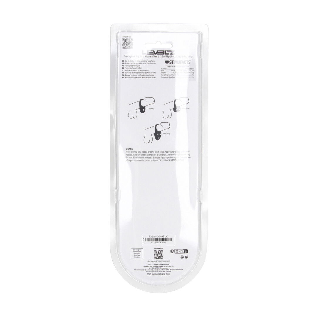 Level up with added intensity. This weighted cockring set from the LEVELZ collection combines the firm grip of premium silicone with an internal weight for extra pressure and a more grounded, full-bodied feel. Perfect for users who crave that satisfying tug during wear. Non-vibrating, body-safe, and packaged in a sleek clamshell for easy display.