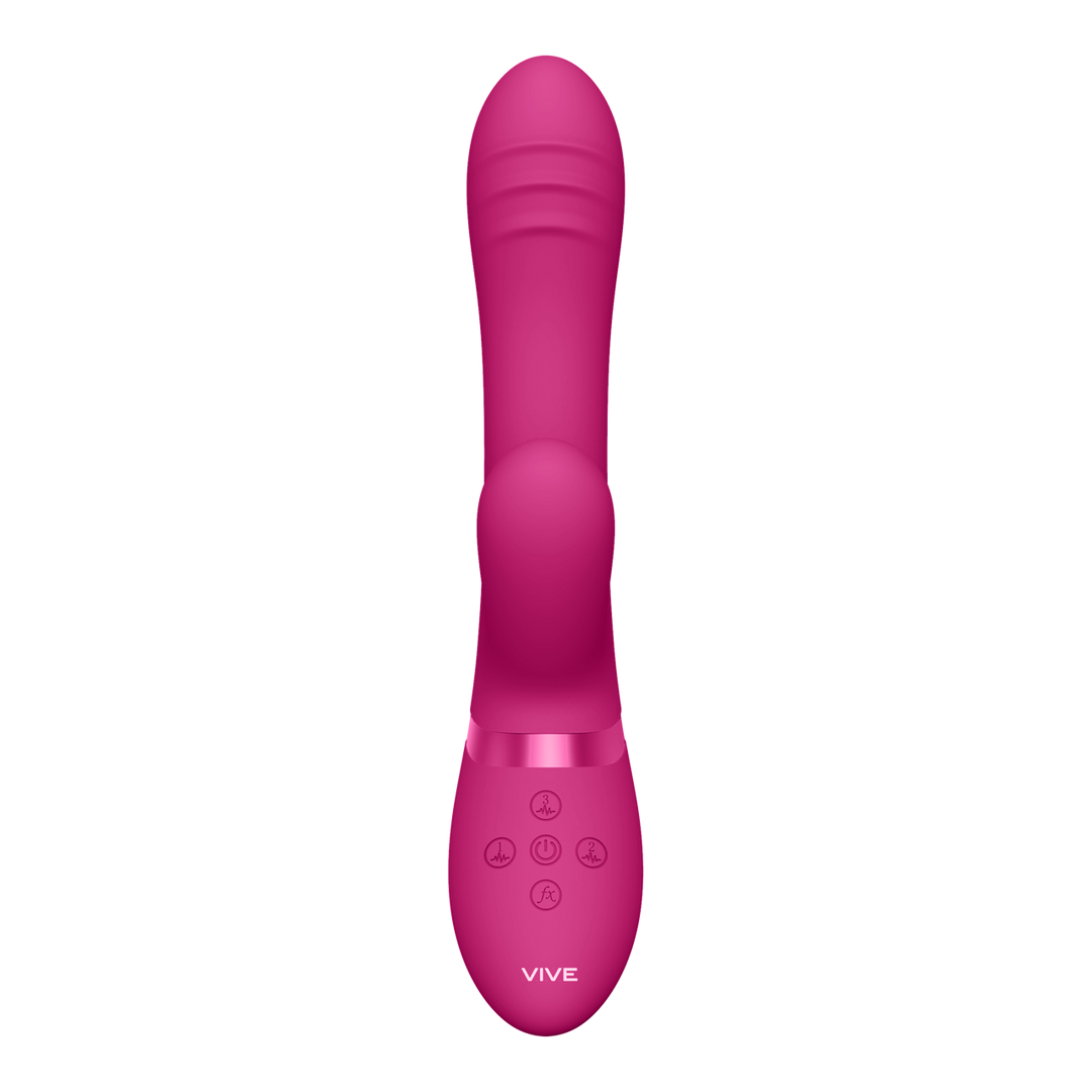 TANI is een van de meest innovatieve en krachtige vibrators. Dankzij de drie nieuwe generatie F1-motoren met 10 functies en geavanceerde technologieën (alle drie de motoren kunnen onafhankelijk worden bestuurd) is deze toy simpelweg waanzinnig. Een 10-functie NG F1 vibrerende motor voor je G-spot, een innovatieve 10-functie NG F1 vingerbewegingsmotor die een vingerbeweging simuleert en een innovatieve 10-functie pulsgolfmotor voor clitorisstimulatie, deze vibrator heeft het allemaal. Met het unieke 3-ribbeltrilontwerp om je G-spot en pulsgolfstimulatie van de clitoris te stimuleren, in combinatie met een vingerbewegingsmotor, krijg je de mogelijkheid van 1000 verschillende standjes, deze vibe laat je zwak in de knieën. Het speeltje is gemaakt van 100% zijdezacht siliconen van medische kwaliteit (hypoallergeen), volledig waterdicht (IPX7) en extreem stil met minder dan 60 dB. Dit betekent dat je hem overal kunt gebruiken waar je hartje begeert! De lithium-ionbatterij van het speeltje word opgeladen middels de magnetische USB aansluiting. Wanneer hij volledig is opgeladen, biedt hij 40 minuten aan gepassioneerde speeltijd. Zo simpel: aansluiten, opladen en heerlijk spelen! Wanneer je bijna een climax nadert, kun je met één druk op de speciale functie climax-knop alle motoren onmiddellijk op volle kracht / snelheid zetten en, nog belangrijker, je naar een wereldschokkend orgasme brengen. Alle VIVE-vibrators worden geleverd met een volledige garantie van 1 jaar.NNNNNNNNN