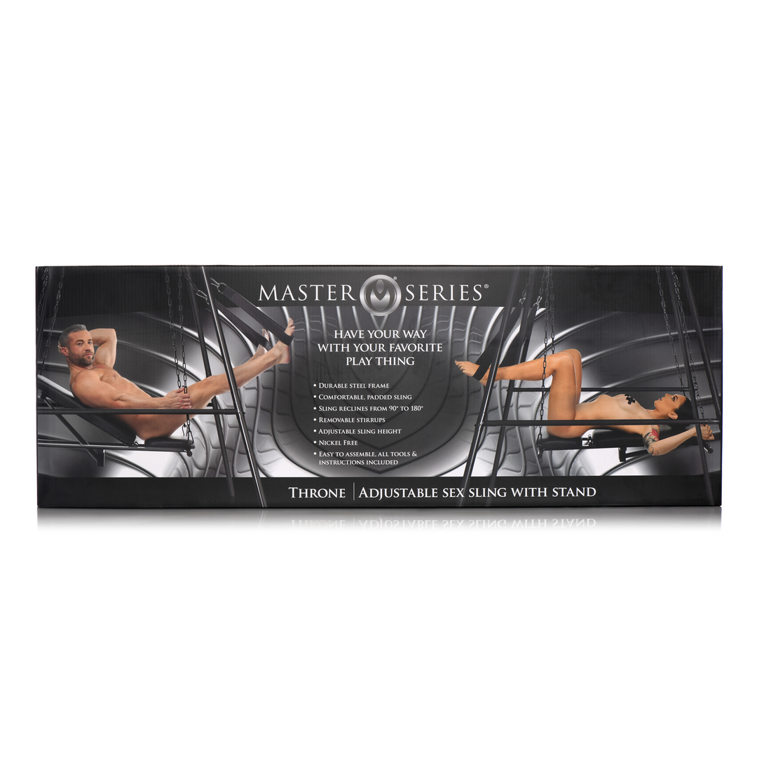 Deze sling is anders dan andere. Voor degenen die ondersteuning willen en een gevoerde maar stevige ondergrond, is deze sling een zwevende stoel of bondage tafel die je ervaring gewichtloos maakt. Terwijl je de zwaartekracht tart en de grenzen van je ondeugende comfortzone verkent in intense of stimulerende scènes, bevind je je veilig boven de grond op deze stoel sling, opgehangen aan een duurzaam stalen frame dat tot 150 kg kan dragen. De stoel hangt via kettingen aan het eenvoudig te monteren frame. Beugels zijn inbegrepen en stellen je in staat om je benen te verhogen of je handen vast te pakken, afhankelijk van je positie. Stel de hoogte volledig in zodat je partner kan genieten van ergonomische penetratie en spel! Pas de hoek van de stoel aan van 90 graden tot 180 graden om van rechtop zitten naar achterover liggen te gaan en ontdek welke hoek je de perfecte hoek geeft om je A-spot, G-spot of P-spot te raken! De comfortabele, gevoerde stoel is bedekt met vegan-vriendelijk, gemakkelijk te reinigen PU-leer. Zet de sling en standaard op. Als jij degene bent die zal staan terwijl je het gebruikt, zorg er dan voor dat het zo is ingesteld dat de stoel op heuphoogte is voor optimale toegang tot penetratie. Voor handmatige penetratie ga in een lunges en verbreed je houding voor de beste krachtpositie. Help je partner dan om in de stoel te komen. Ze kunnen hun benen in de beugels plaatsen en je kunt ze laten zitten of achterover laten liggen in de hoek van jouw keuze. Zodra je ze in de stoel hebt, kun je nu genieten van gemakkelijke penetratie! Pak de stoel vast en wieg deze heen en weer tegen je met elke duw. Houd ze op hun plaats en bereik hun zoete plek gemakkelijk. Ga op hen zitten of speel met hun tepels, erogene zones en meer! Als je ze achterover laat liggen, kunnen ze je ook orale bevrediging geven! Veel plezier en geniet van de rit! Afmetingen: (LxBxD= 208 x 216 x 216 cm) STANDAARD: 82 inch. Geassembleerde hoogte 85 inch x 58 inch basisoppervlak. SLING: Frame meet 39,5 inch lengte x 31 inch breedte. Zitting meet 11 inch lengte x 15,5 inch breedte. Rugleuning meet 27,5 inch lengte x 15,75 inch breedte leunt van 90° tot 180°. KETTINGEN: 46 inch lengte BEUGELS: 20 inch lengte Maximaal gewichtslimiet: 150 kg Materialen: IJzer, PU-leer Kleur: Zwart, metaal Opmerking: Alle gereedschappen en instructies inbegrepen Belangrijkste kenmerken: Duurzaam Frame: Gemaakt van duurzaam staal kan dit frame tot 150 kg aan. Verstelbare Hoogte: Pas de hoogte aan zodat je een ergonomische opstelling hebt voor allerlei ondeugende plezier! Verstelbare Sling: Ga van 90 tot 180 graden zodat je het zittend of achterover liggend kunt genieten. Comfortabele PU-leer Pads: De twee delen van de slingstoel zijn gevoerd en bedekt met vegan-vriendelijk PU-leer.