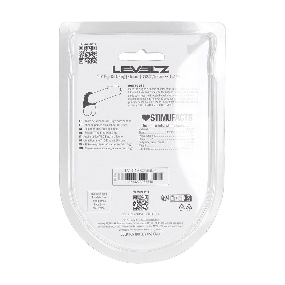 Take full control with the Tri-O Ring from the LEVELZ collection. Featuring three connected loops for shaft, cock balls, and full package support, this non-vibrating ring maximizes pressure and prolongs pleasure. Made from premium, body-safe silicone and packaged in a bold, merchandisable clamshell, the Tri-O is built for players who want more structure and sensation.