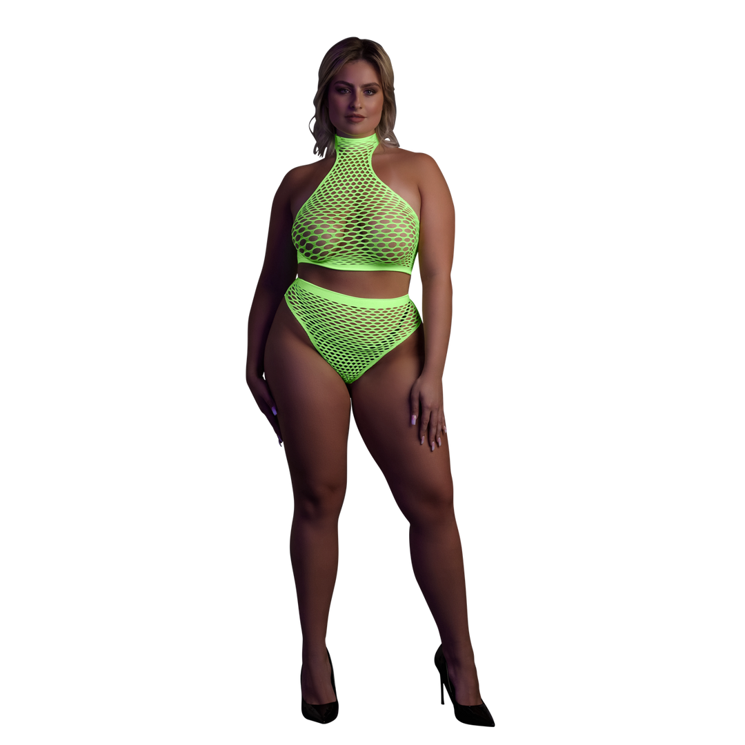 Our Neon lingerie is the perfect addition to your collection. Made with comfortable, easytofit, stretchy materials they are designed to fit your body perfectly. Whether you’re using them as party wear or as lingerie, this eye-catching piece will make sure you stand out! Unleash your inner goddess with this stunning UV activated lingerie. This piece consist of a turtle neck crop top and high waist panty. An amazing party-wear that gives you that wow-factor and makes you stand out. The UV activated materials adds a touch of mystery and allure. Easy to fit because of the stretchy materials will make you light up the night. Available in neon pink and neon green. Sizes run from XS/ XL to XL/XXXXL