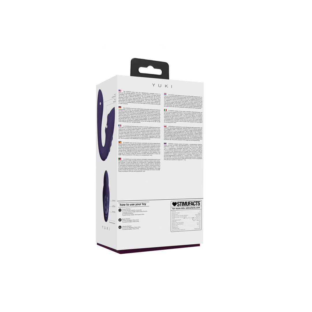 The VIVE059 comes with two independently controlled motors to give you the ultimate pleasure experience. The first motor is all about sensual massaging. The 3-speed moving-beads motor will massage your clit and bring you to the edge of pleasure and beyond. The second 10-speed vibe motor is designed to target your G-spot area, taking your pleasure to new heights. Made from 100% silky smooth medical-grade silicone, the YUKI is IPX7 waterproof/submersible and USB magnetic rechargeable. A 110-minute charge will give you 60 minutes of unbridled pleasure at less than 60dB. All VIVE products come with a 1-year warranty.