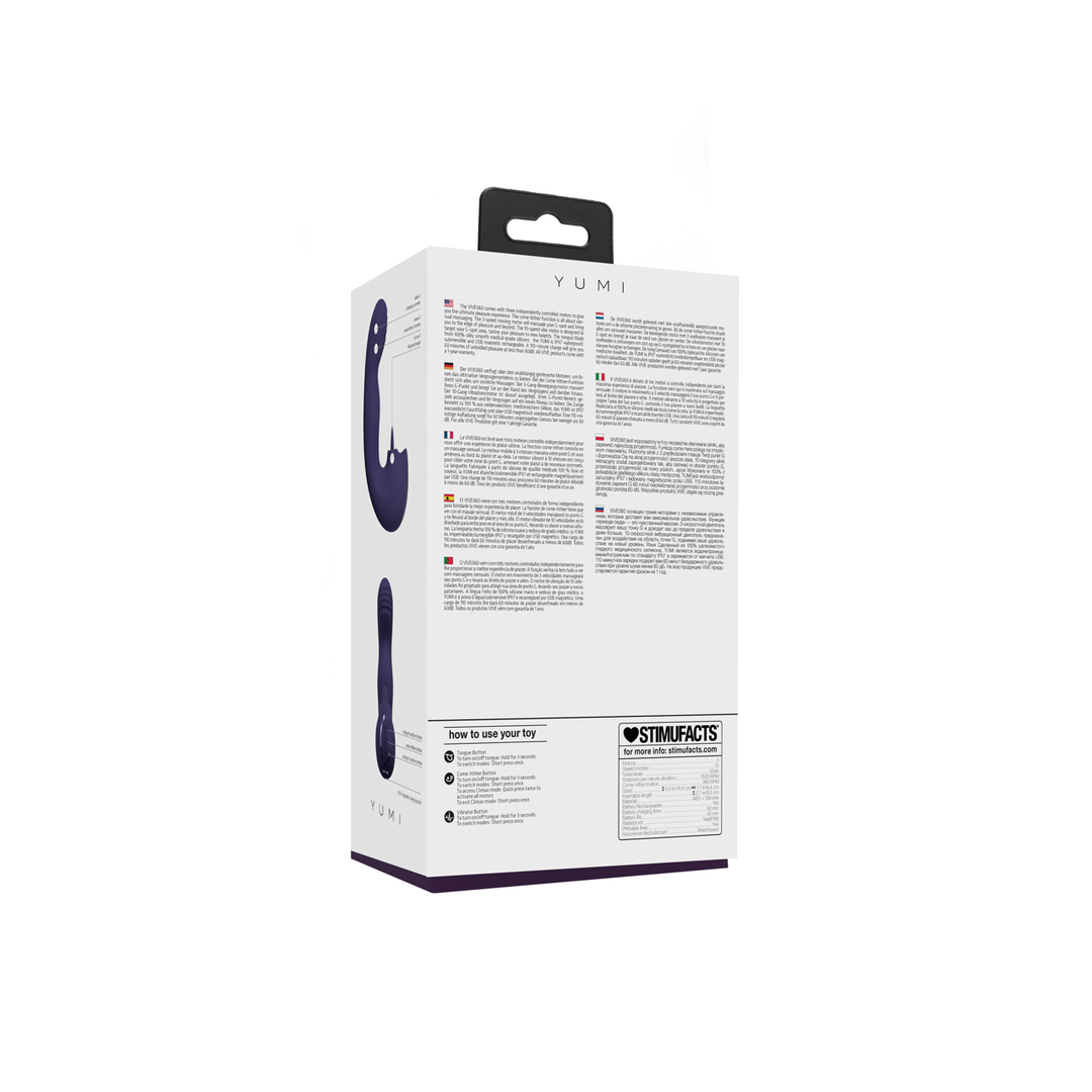 Yumi – Triple Motor G-Spot Vingerbeweging Vibrator en Flickerende Tong Stimulator – Paars